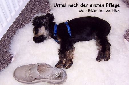 ein kleiner Welpe braucht Fellpflege und so musste der kleine Urmel in